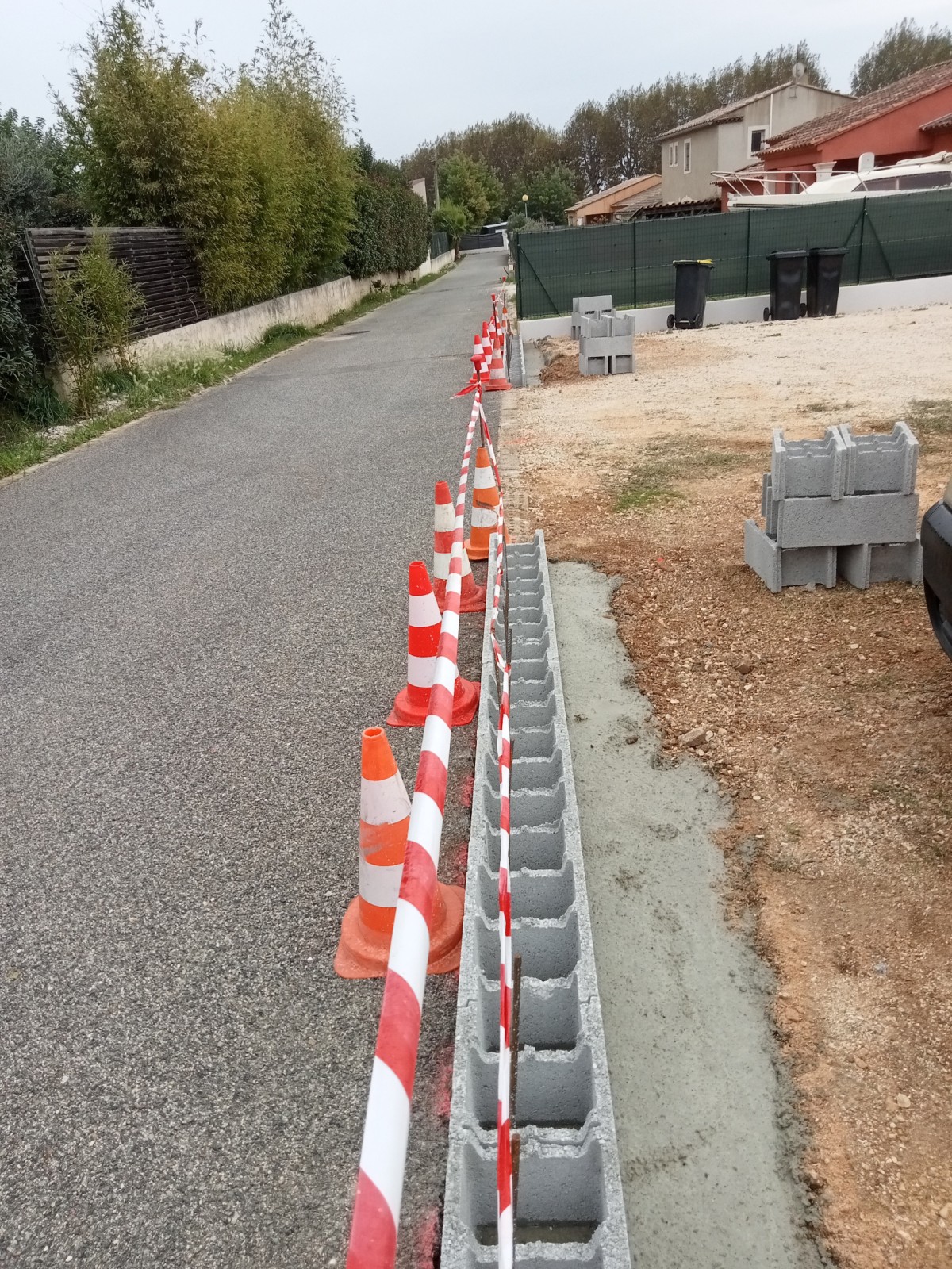 Création d'un mur de clôture en agglos à bancher et béton armé pour résister aux forts vents de la région.